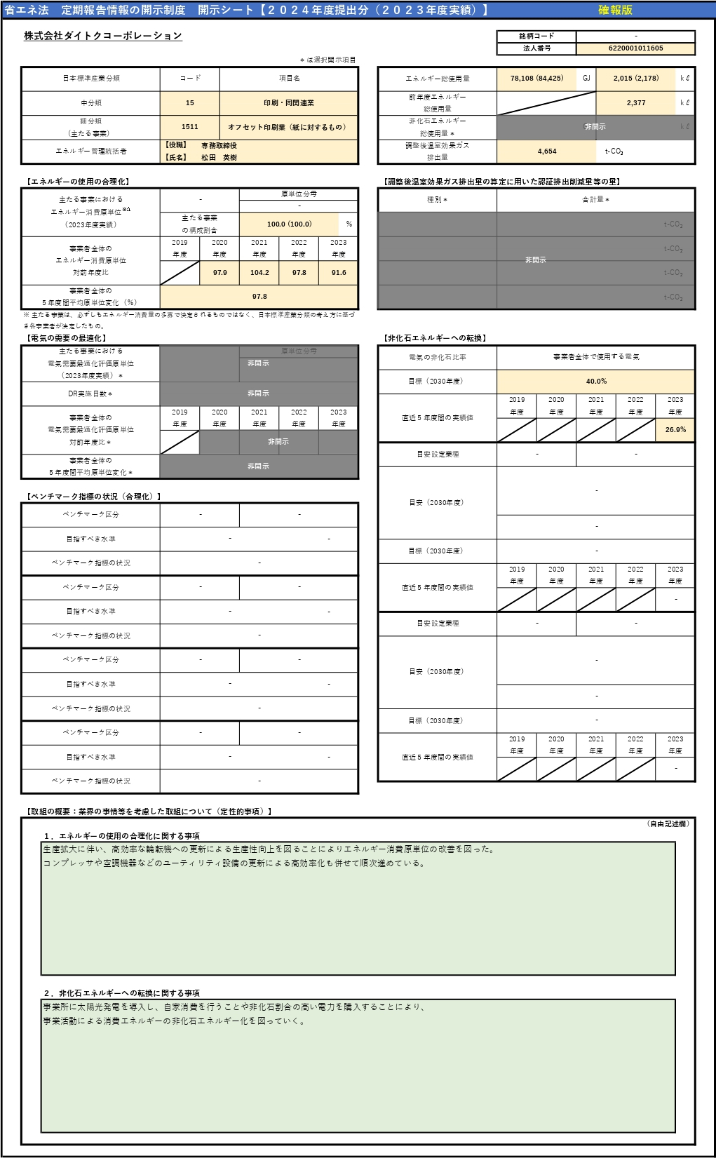 > 令和6年度 省エネ法定期報告書・中長期計画書