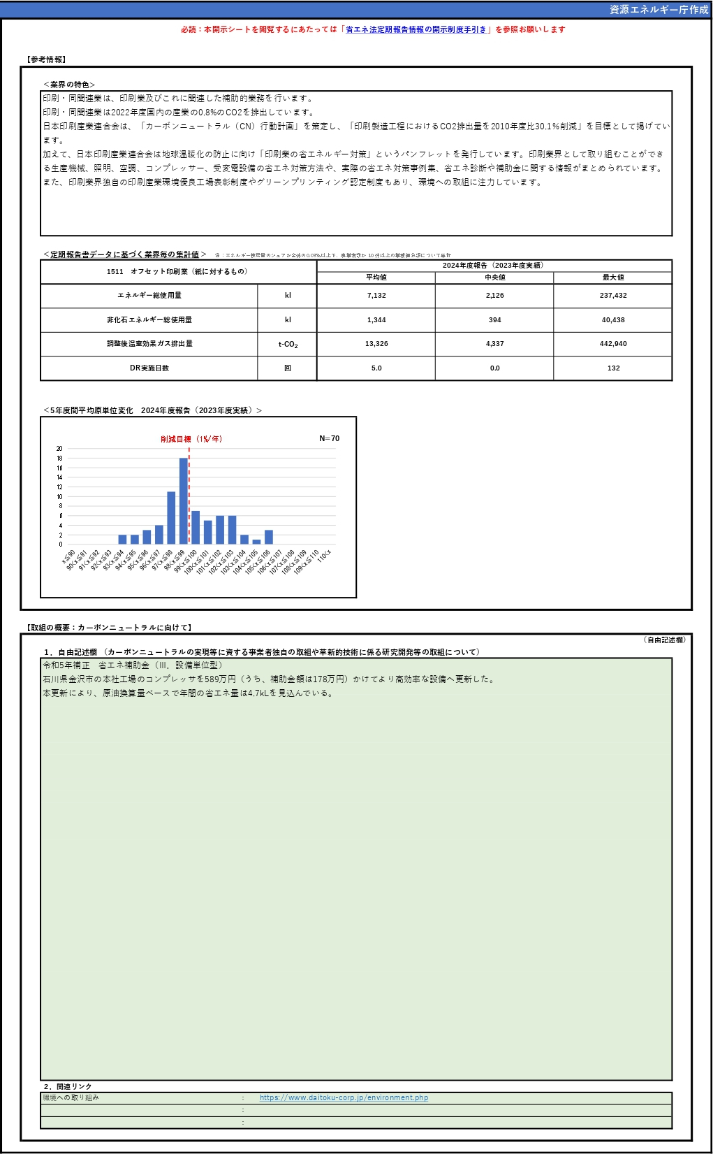 必読:本開示シートを閲覧するにあたっては「省エネ法定期報告情報の開示制度手引き」を参照お願いします