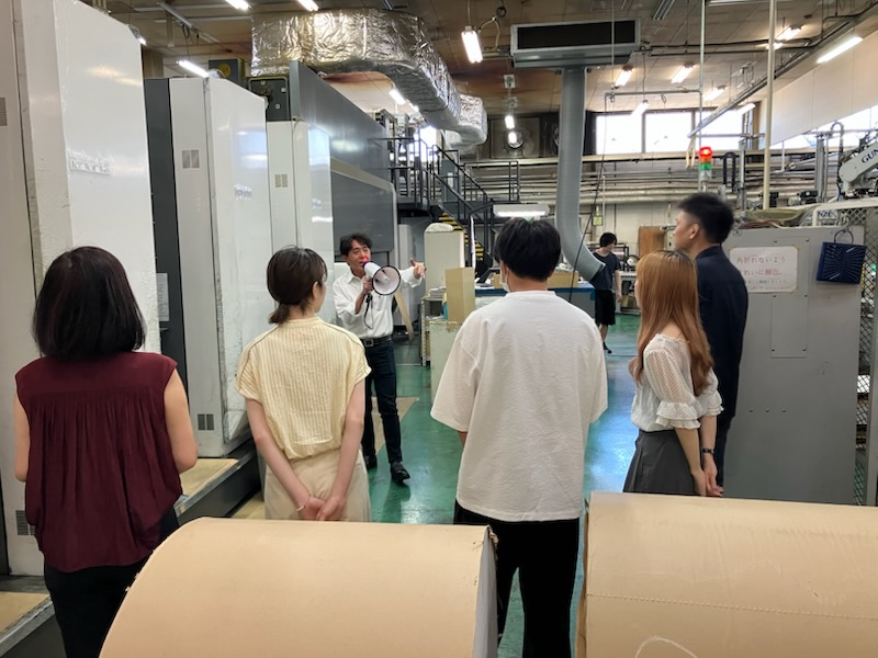 北陸デザイナー専門学校の生徒さんがデザインの勉強の一環として工場見学にいらっしゃいました。普段生徒さんたちが作っているデザインから製版・印刷・製本加工へと仕上がっていく工程を興味深く見学されていました。