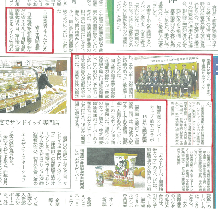 本日、2025年度のエネルギー管理優良事業者等の石川県県知事表彰を受賞しました。
